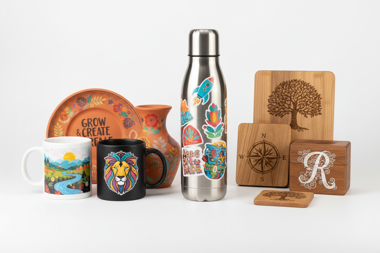 Pegatinas duraderas e impermeables, impresas con diseños en una película especial con tintas UV y transferidas a superficies duras como vidrio, plástico, madera o metal. Ideales para artículos como tazas, vasos y aparatos electrónicos, donde los métodos de impresión tradicionales presentan dificultades. Es un método versátil de corte y desprendimiento que no requiere despegarse, ofreciendo colores vibrantes y efectos 3D tanto para artículos planos como curvos, lo que facilita la personalización y la hace más duradera que el vinilo.